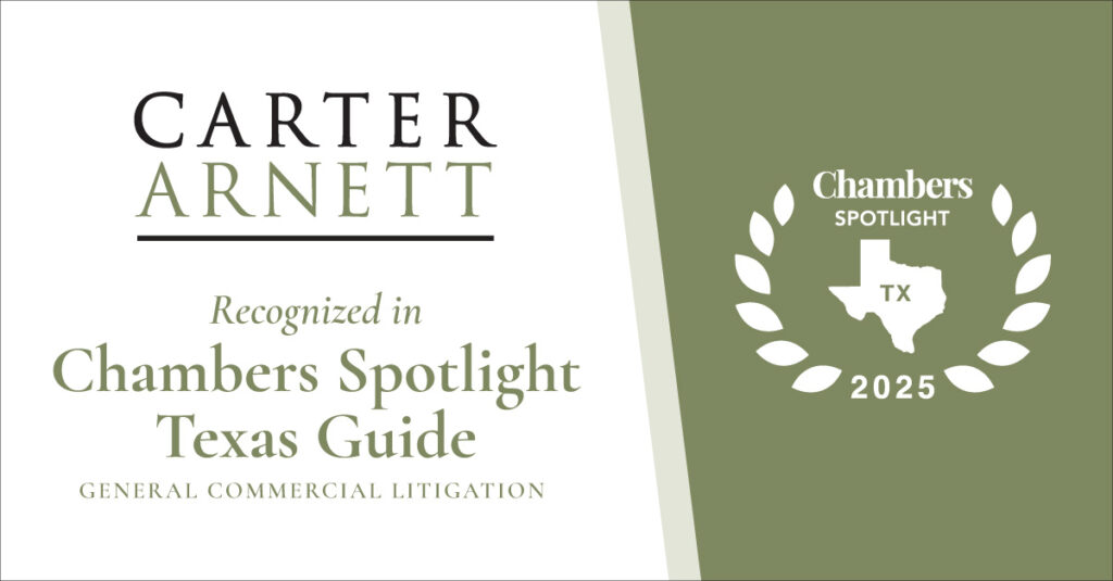 Recognized for excellence in general commercial litigation, Carter Arnett is one of 27 Dallas-based firms highlighted in this practice area and one of 78 in Texas.